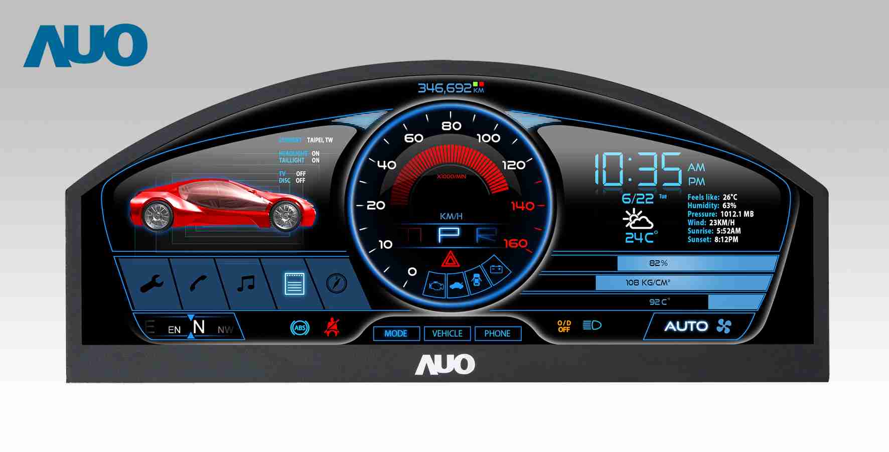 彩霸王 12.3吋超高解析异型切割车用面板,,拥有流线外观及精细画质